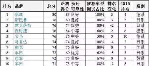 最近,美国最具权威性的《消费者报告》发布了2016年汽车品牌报告,评出汽车品牌质量年度排行榜。总共有三个评分大项:测得分、预计可靠性和推荐车型测试占比。对30个主流汽车品牌进行了评分,下面,茶哥给大家盘点一下最可靠汽车品牌前十名,看看您的车上榜了没?