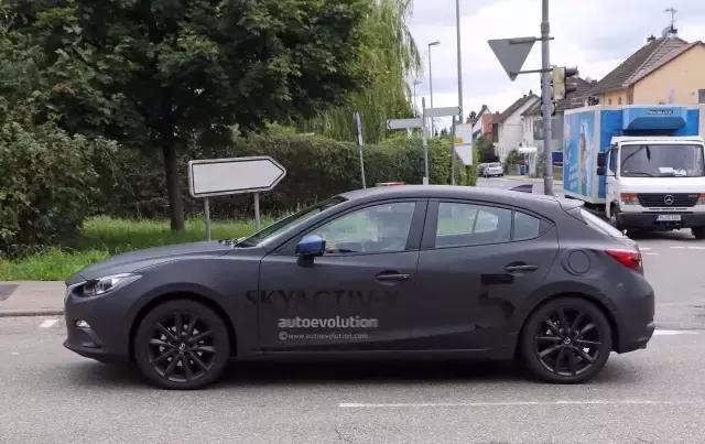由于这台出现在街头的马自达3是台“套壳”车,所以不会有什么遮盖,不过车身上印有“SkyActiv-X”字样。