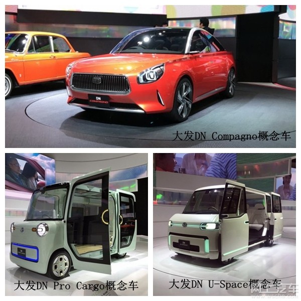大发DN Pro Cargo概念车采用了方盒子造型,能提供强大的车内空间;大发DN Compagno概念车采用了十分个性的外观和富有科技感的内饰;大发DN U-Space概念车外观设计十分科幻,比如前脸、门把手、车内座椅中央等处采用的浅蓝色LED光源。